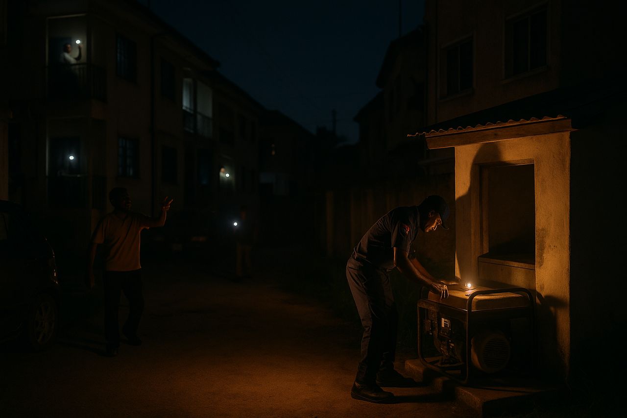 The lights go off. You grab your fan as backup, already sweating. Five minutes pass. Nothing. From the gatehouse, someone shouts, “Try am again!”